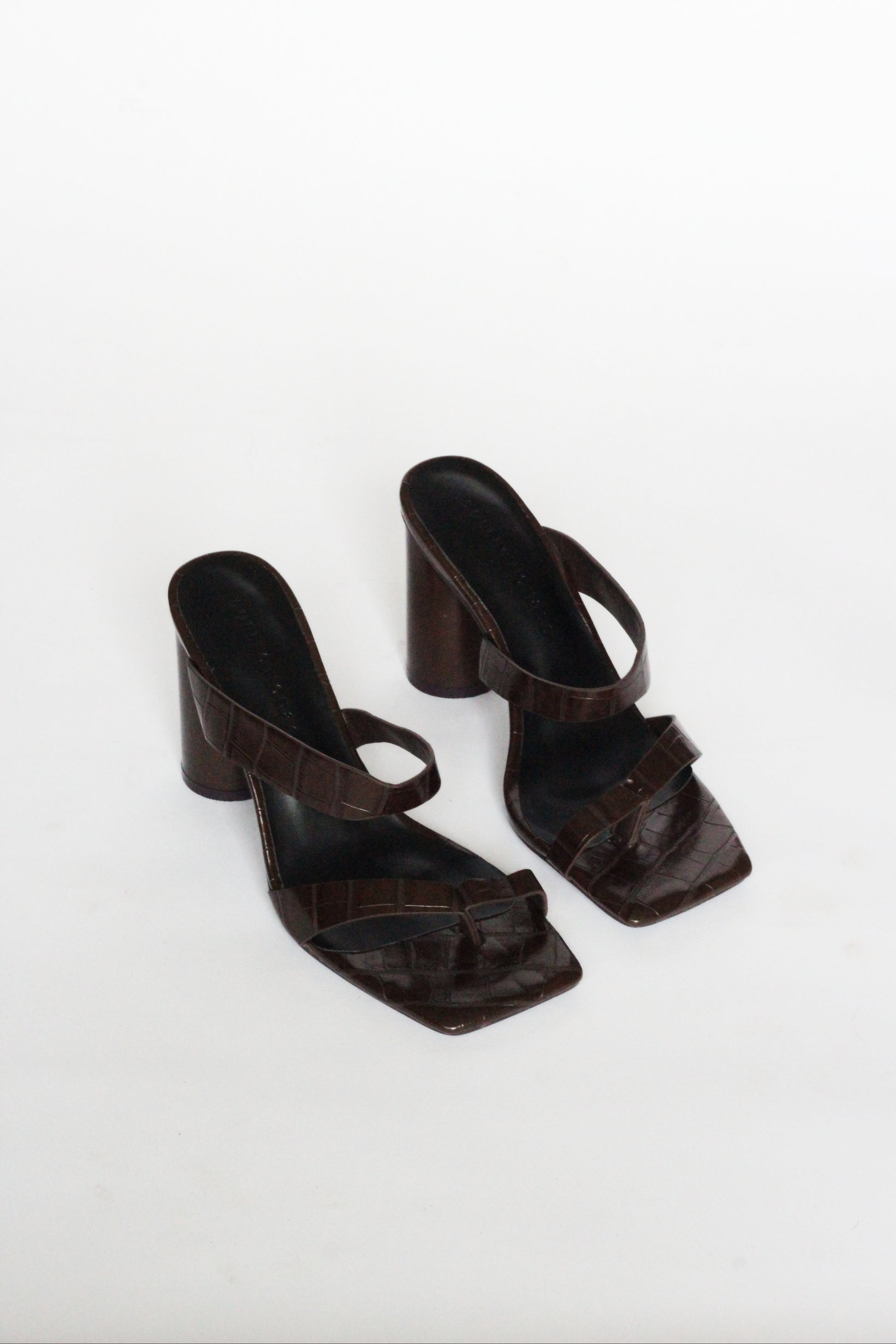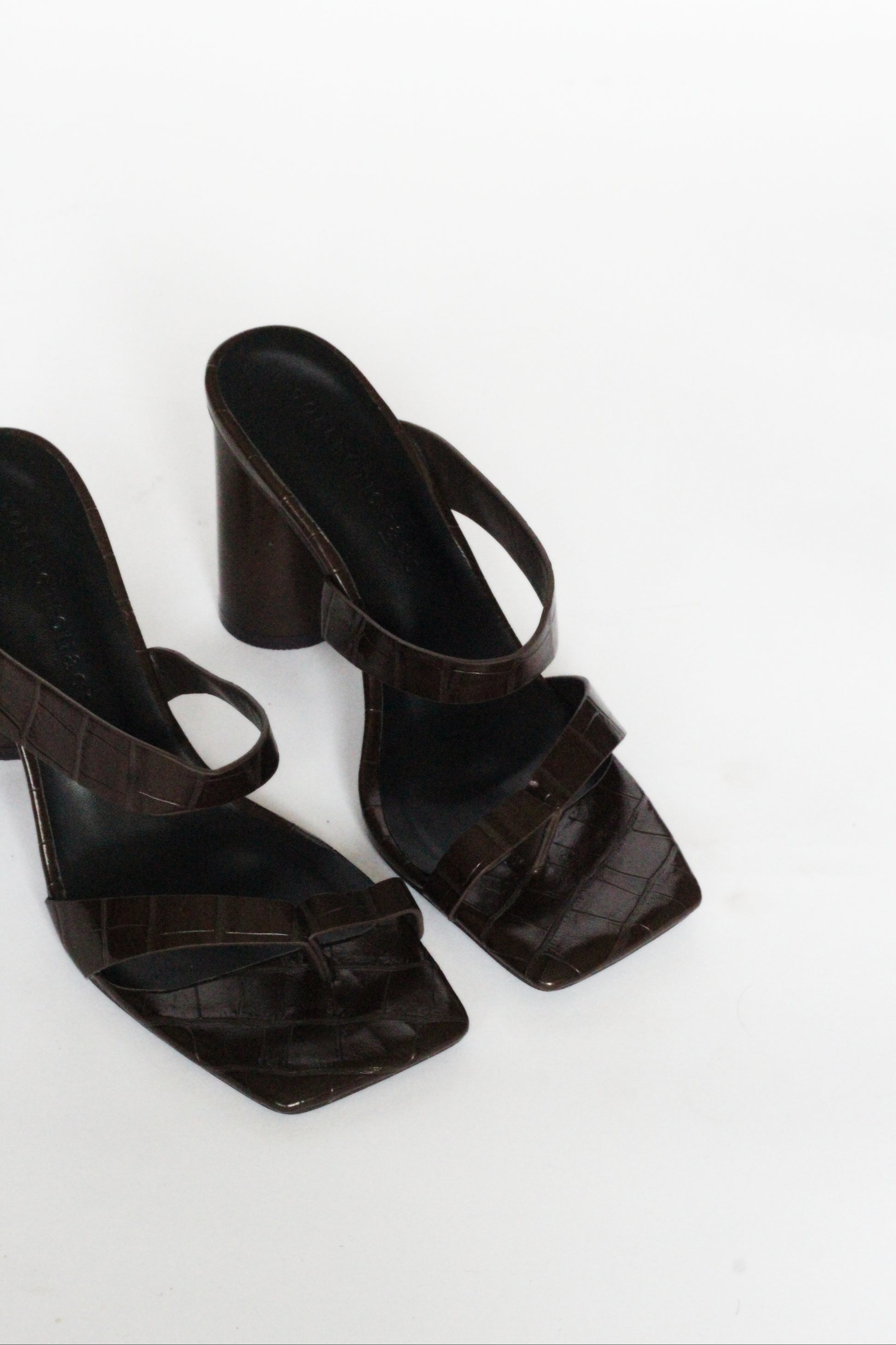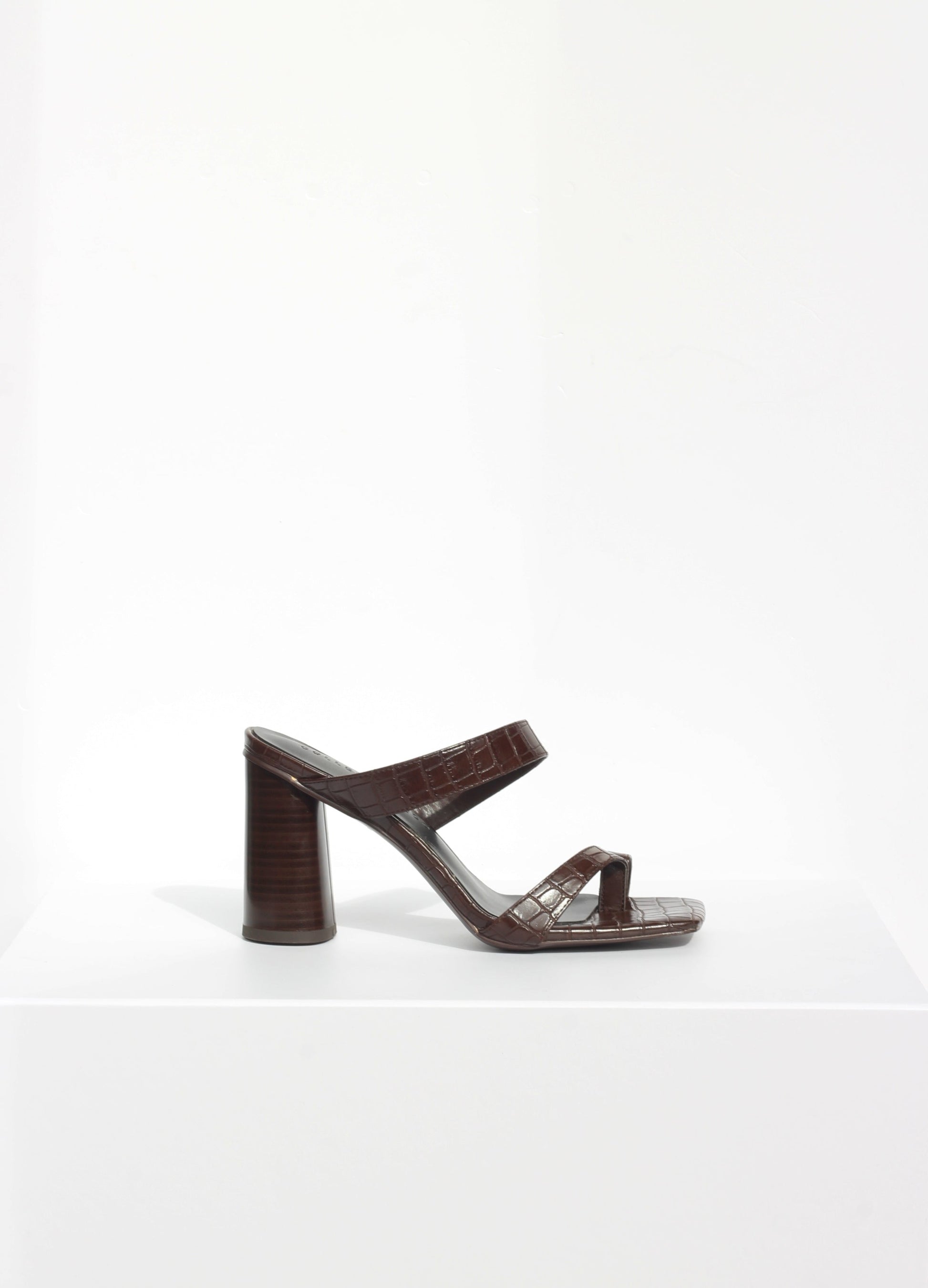 The LUCA slip on mules feature our SS22 signature square toe with panel straps on the front. Complete with a smooth round heel of 10.5 cm for an easy and versatile look.