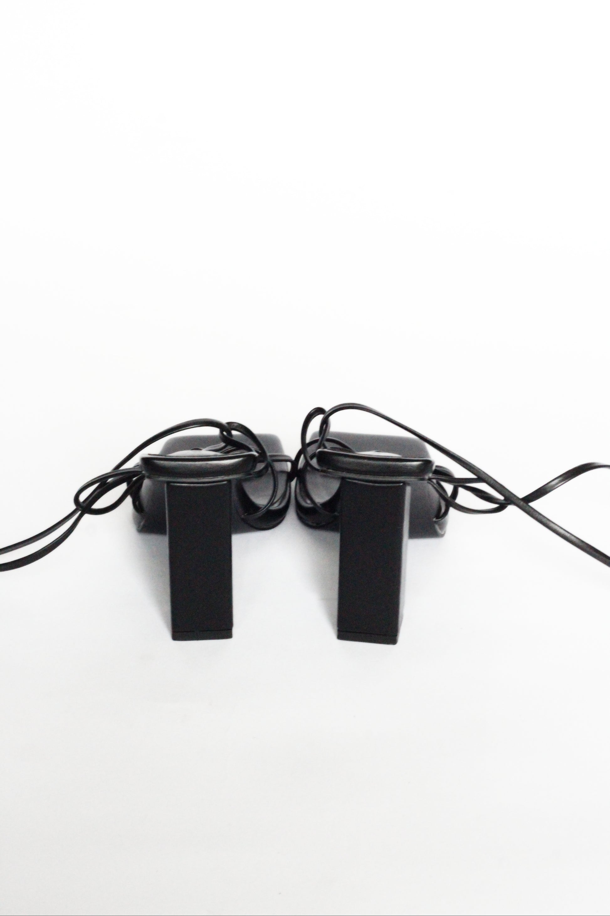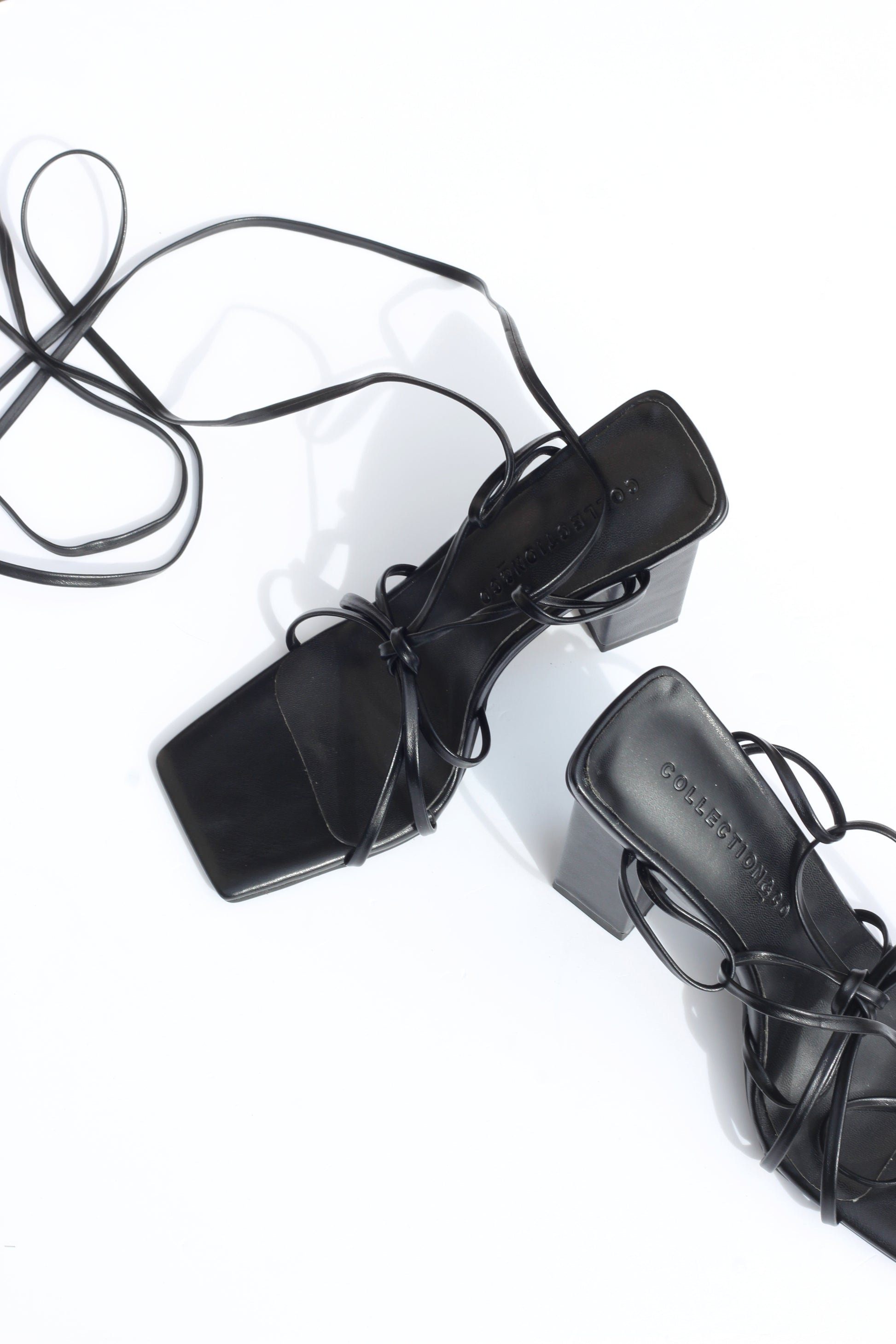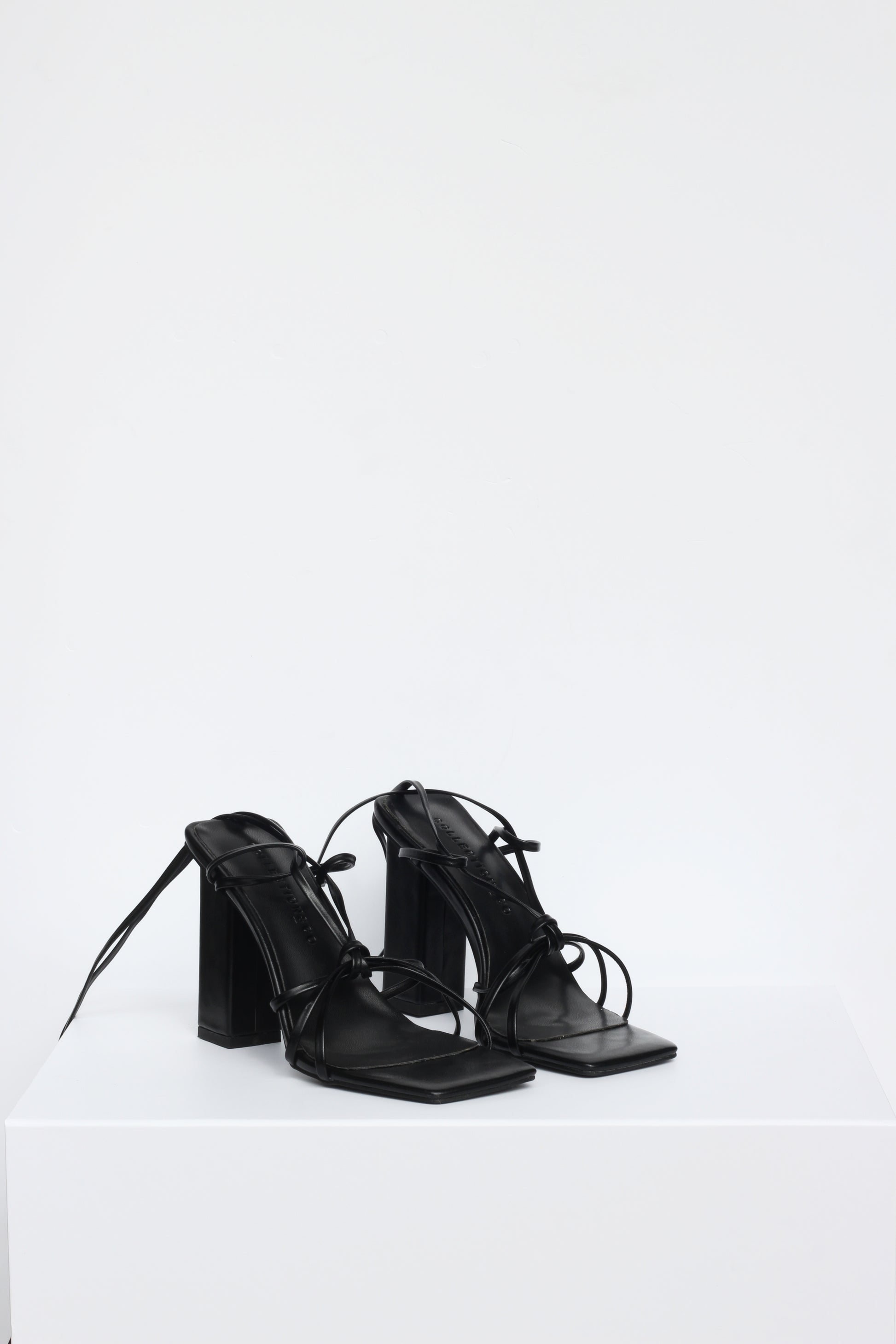 The MARA strappy sandals are the ideal evening shoe. Featuring a structured square toe and straps to tie around the ankles for support. Complete with a square block heel of 10 cm
