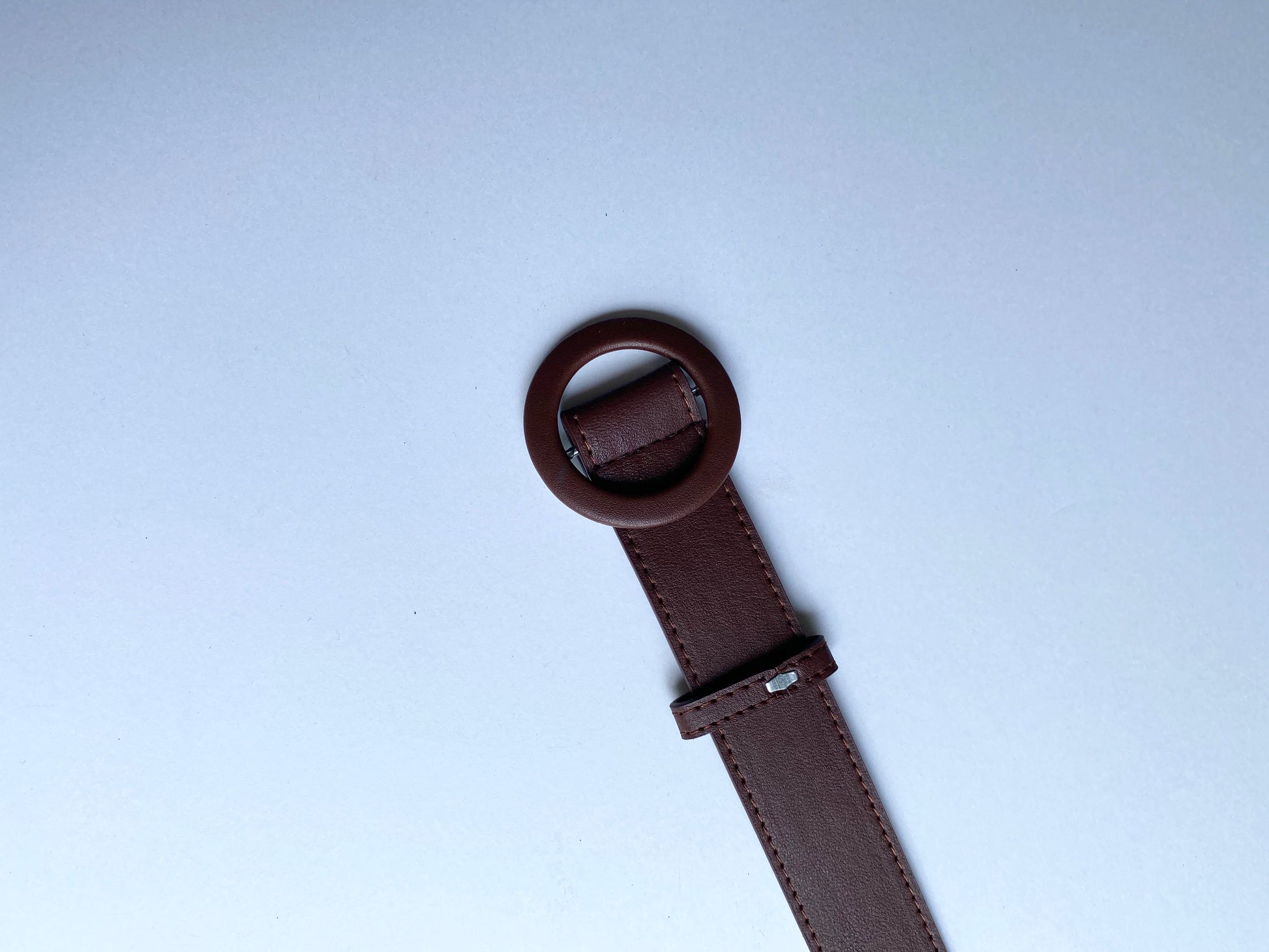 The TIA belt is crafted in soft faux leather and detailed with a circular buckle detail.